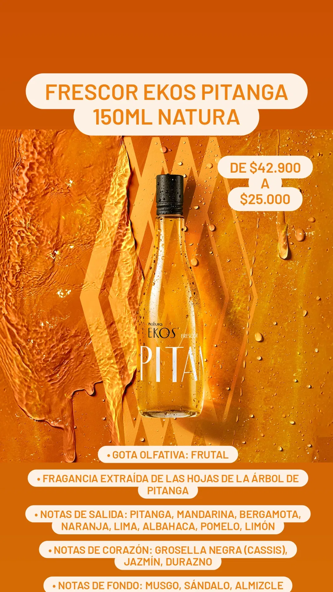 • notas de salida: pitanga, mandarina, bergamota, naranja, lima, albahaca, pomelo, limón