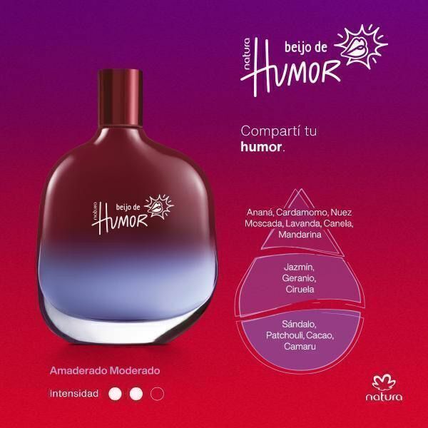 Beijo de Humor es una fragancia irreverente diseñada para quienes buscan romper con la monotonía de la vida cotidiana. Con una cautivadora mezcla de cálidas especias, adictivas notas de ciruela y el cremoso toque de cacao, un ingrediente de la biodiversidad amazónica, la colonia masculina Beijo de Humor despierta la atracción y brinda momentos llenos de amor y humor.