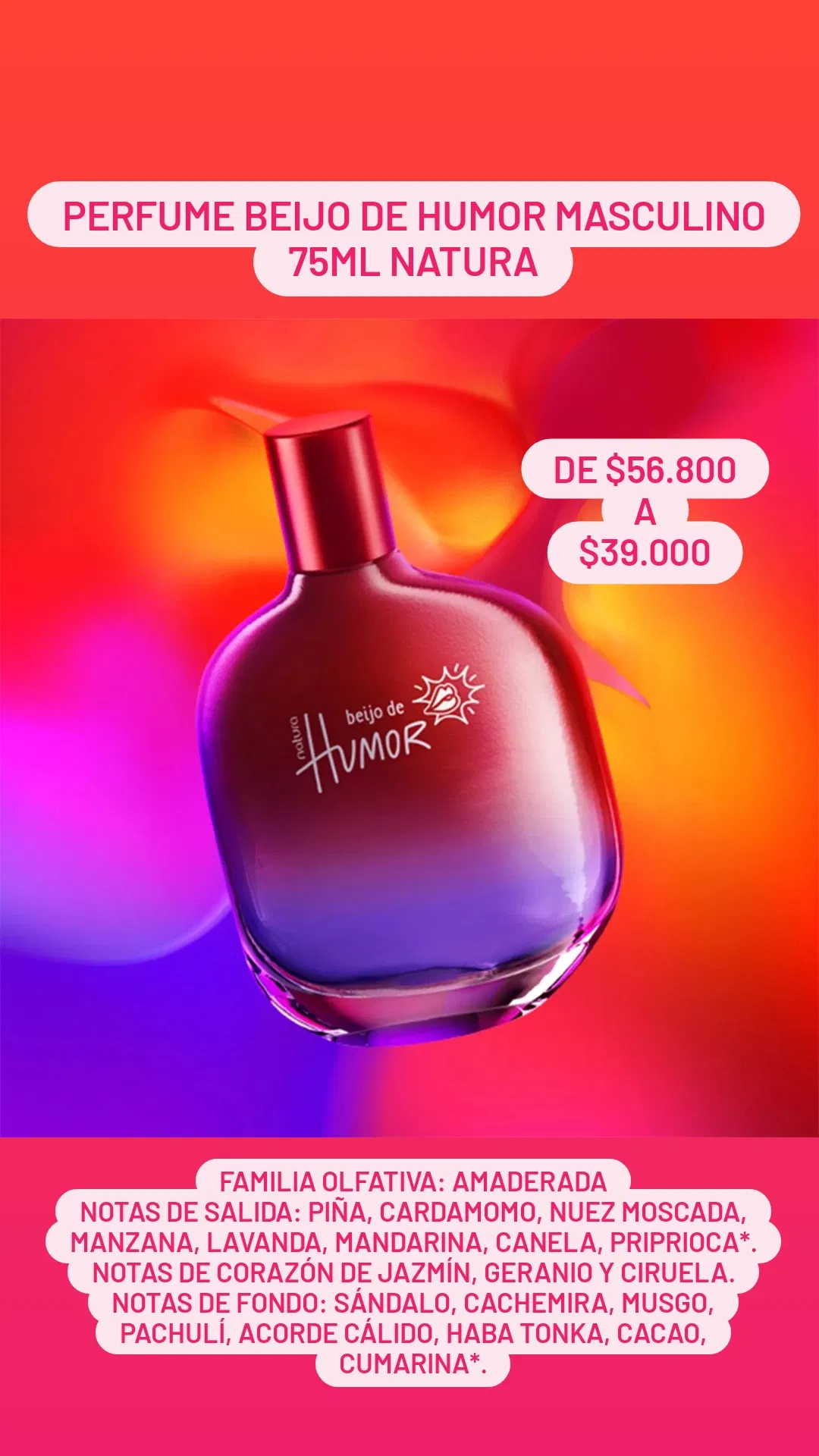 Beijo de Humor es una fragancia irreverente diseñada para quienes buscan romper con la monotonía de la vida cotidiana. Con una cautivadora mezcla de cálidas especias, adictivas notas de ciruela y el cremoso toque de cacao, un ingrediente de la biodiversidad amazónica, la colonia masculina Beijo de Humor despierta la atracción y brinda momentos llenos de amor y humor.