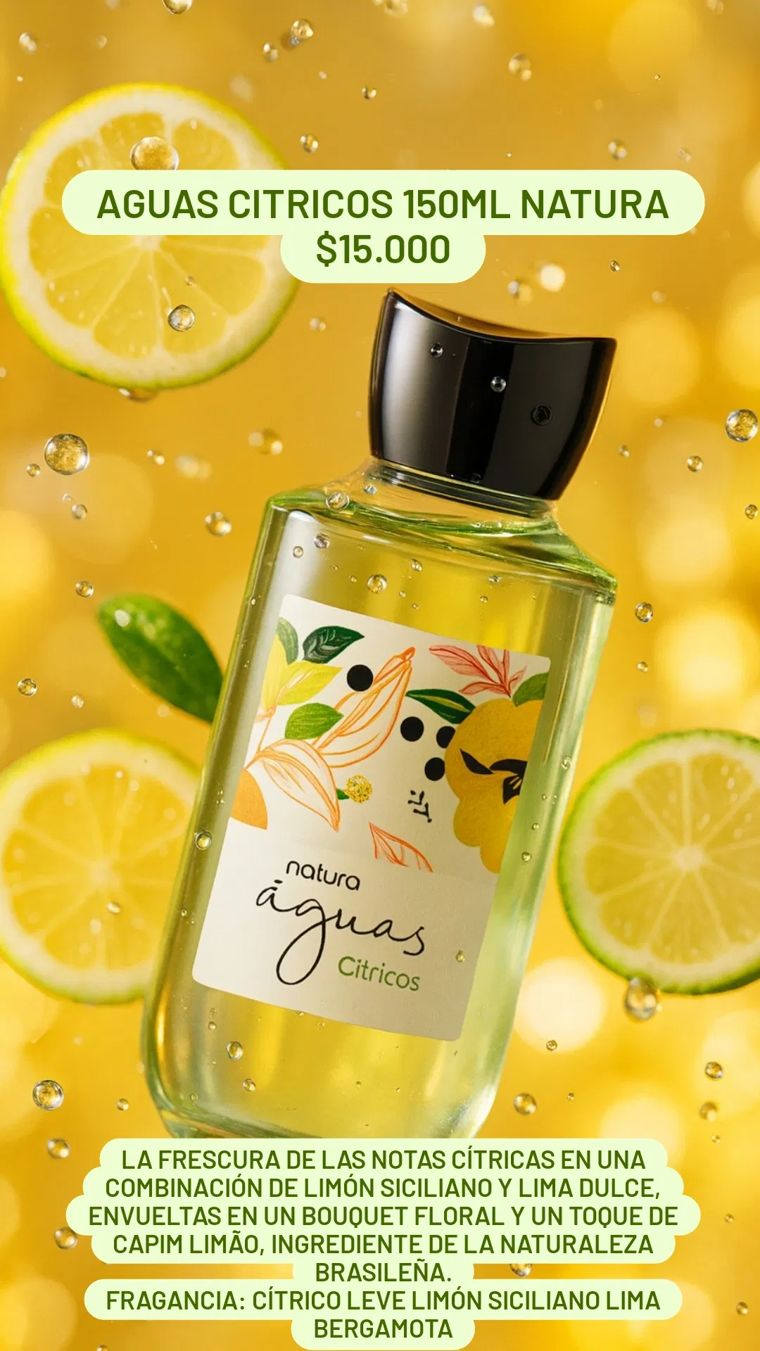 Fragancia: Cítrico Leve Limón Siciliano Lima Bergamota