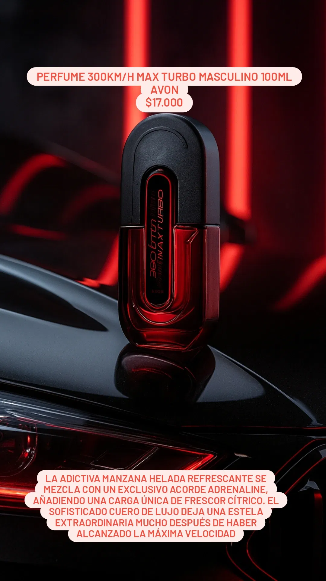 La adictiva manzana helada refrescante se mezcla con un exclusivo acorde Adrenaline, añadiendo una carga única de frescor cítrico. El sofisticado cuero de lujo deja una estela extraordinaria mucho después de haber alcanzado la máxima velocidad.