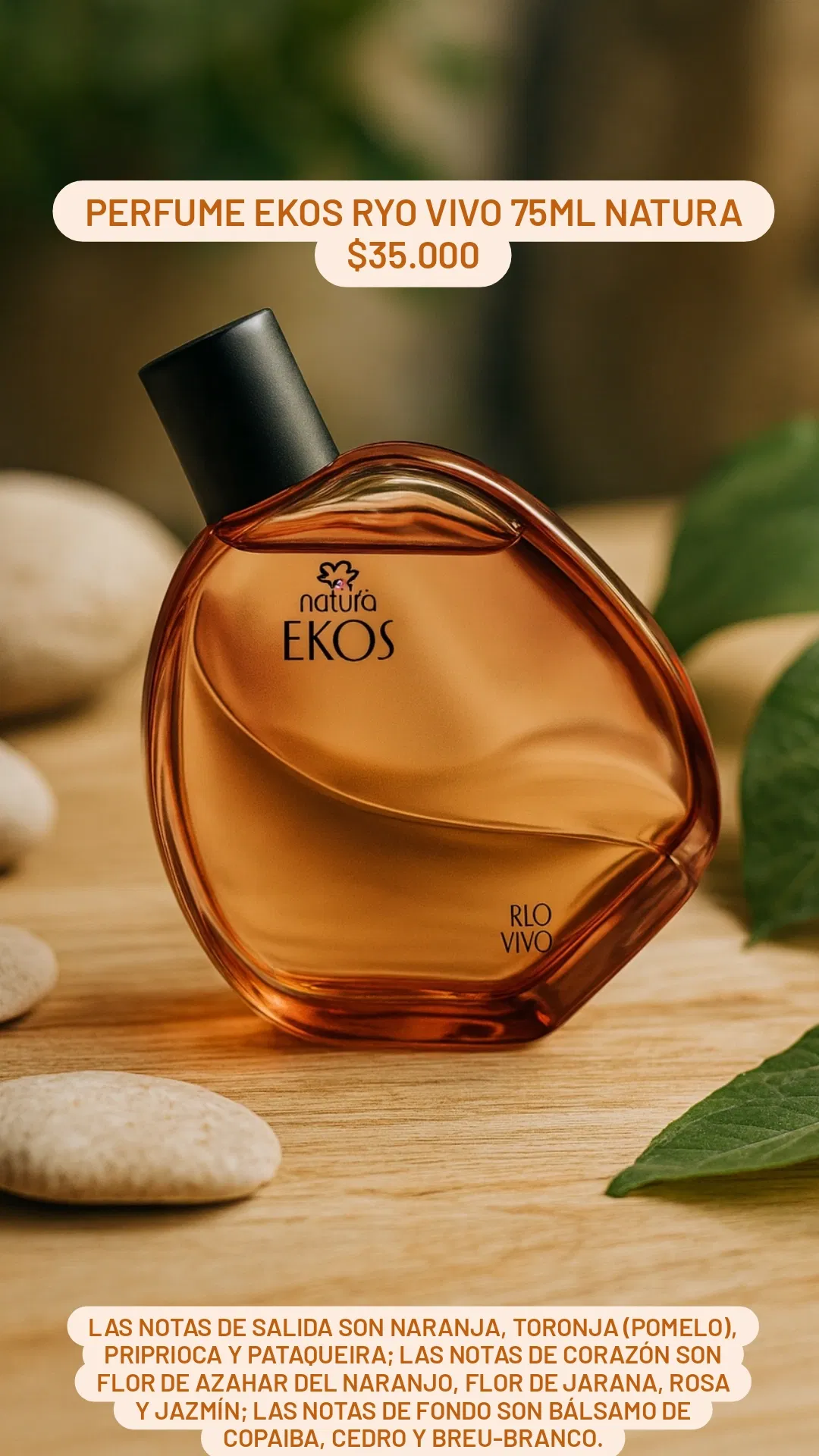 LAS NOTAS DE SALIDA SON NARANJA, TORONJA (POMELO), PRIPRIOCA Y PATAQUEIRA; LAS NOTAS DE CORAZÓN SON FLOR DE AZAHAR DEL NARANJO, FLOR DE JARANA, ROSA Y JAZMÍN; LAS NOTAS DE FONDO SON BÁLSAMO DE COPAIBA, CEDRO Y BREU-BRANCO.