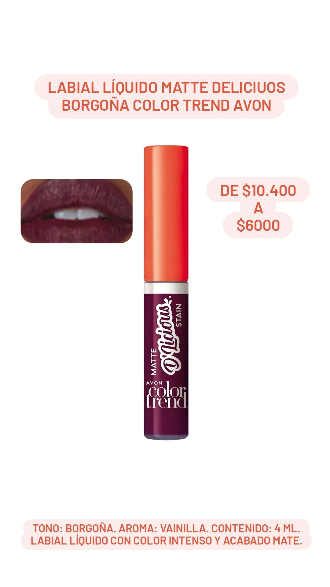 Labial Líquido Matte Deliciuos Borgoña Color Trend Avon