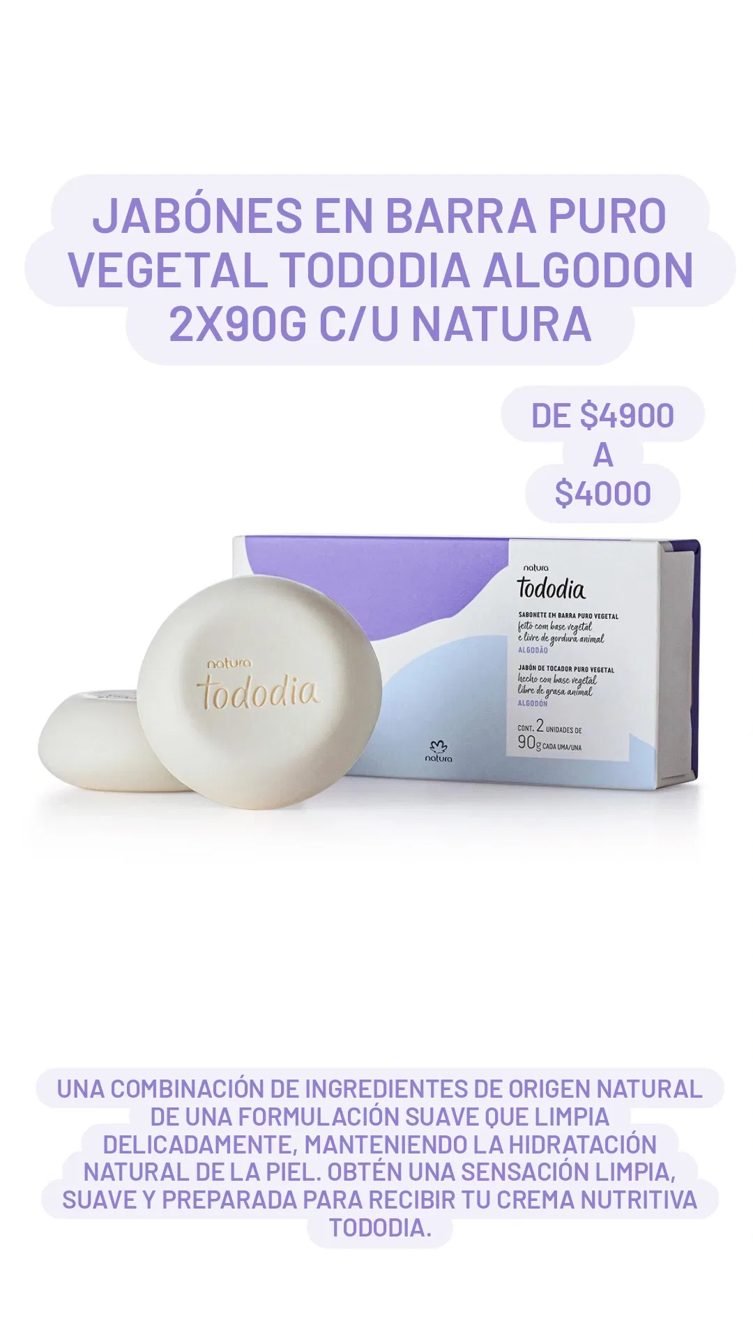 Jabónes en Barra Puro Vegetal Tododia Algodón 2x90g c/u Natura