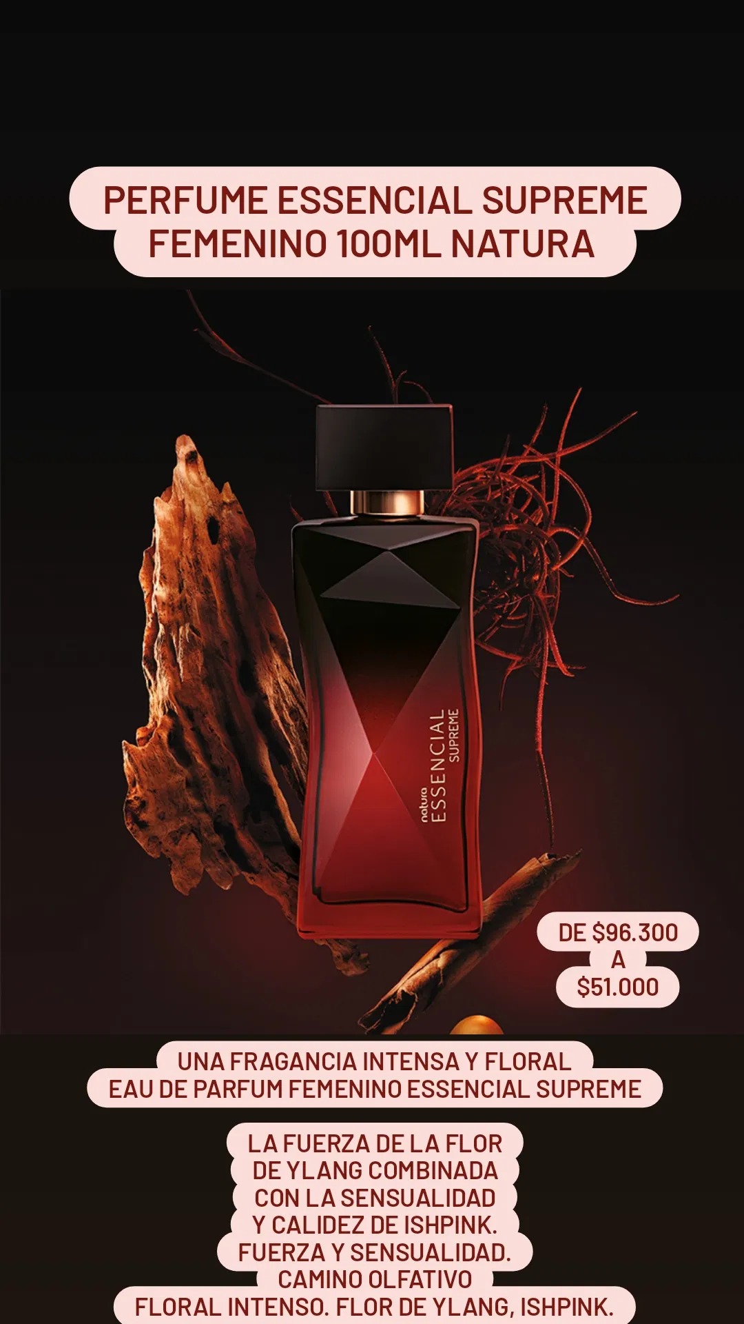 Floral intenso. Flor de ylang, ishpink.