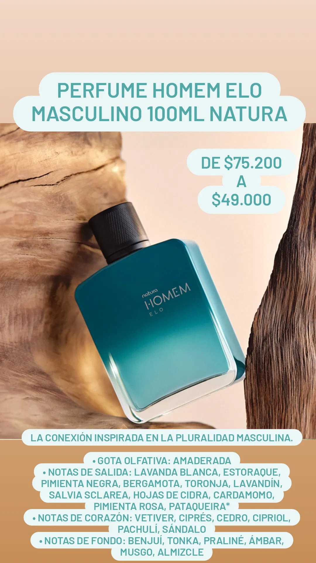 • notas de corazón: vetiver, ciprés, cedro, cipriol, pachulí, sándalo