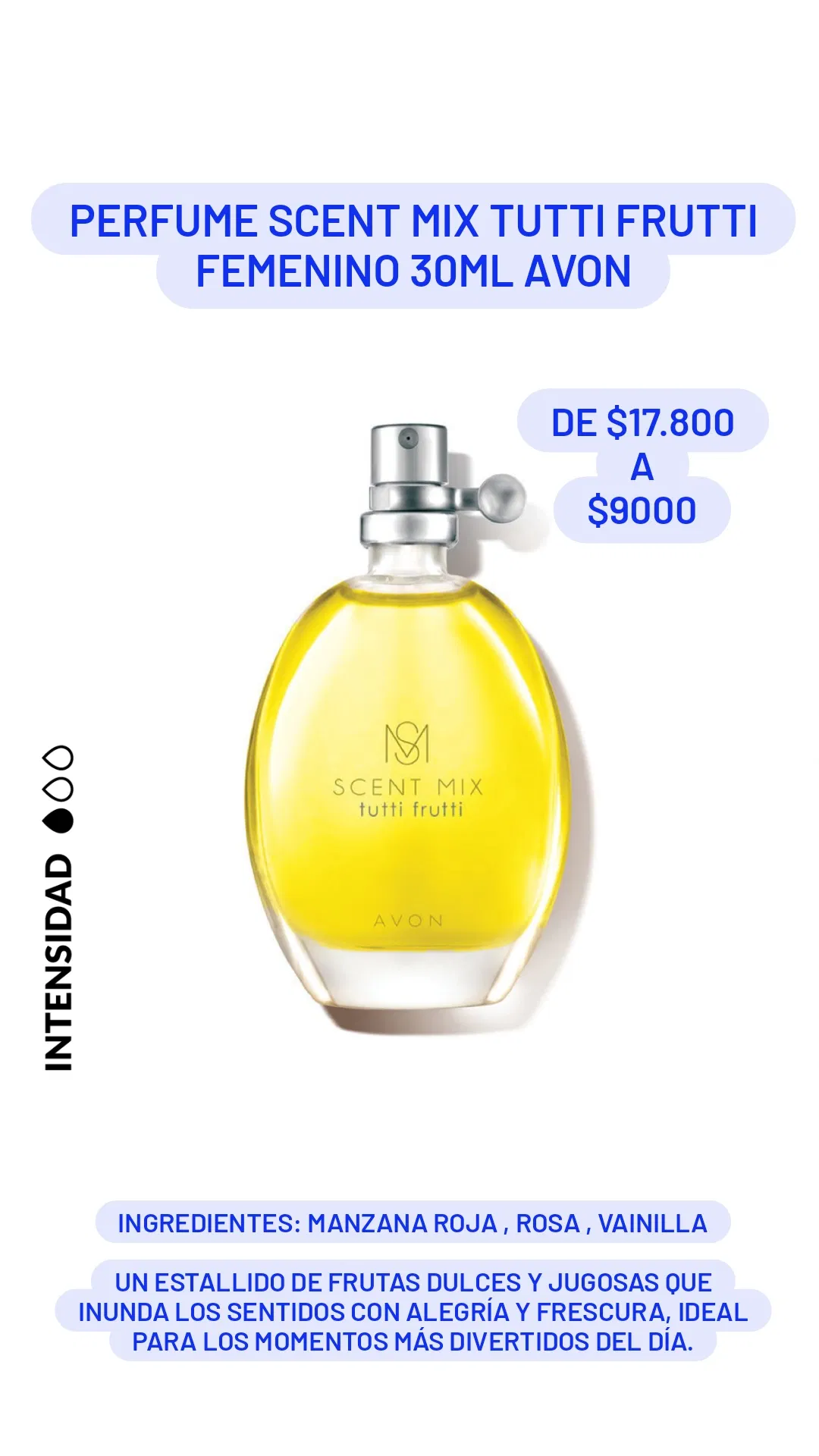 Un estallido de frutas dulces y jugosas que inunda los sentidos con alegría y frescura, ideal para los momentos más divertidos del día.