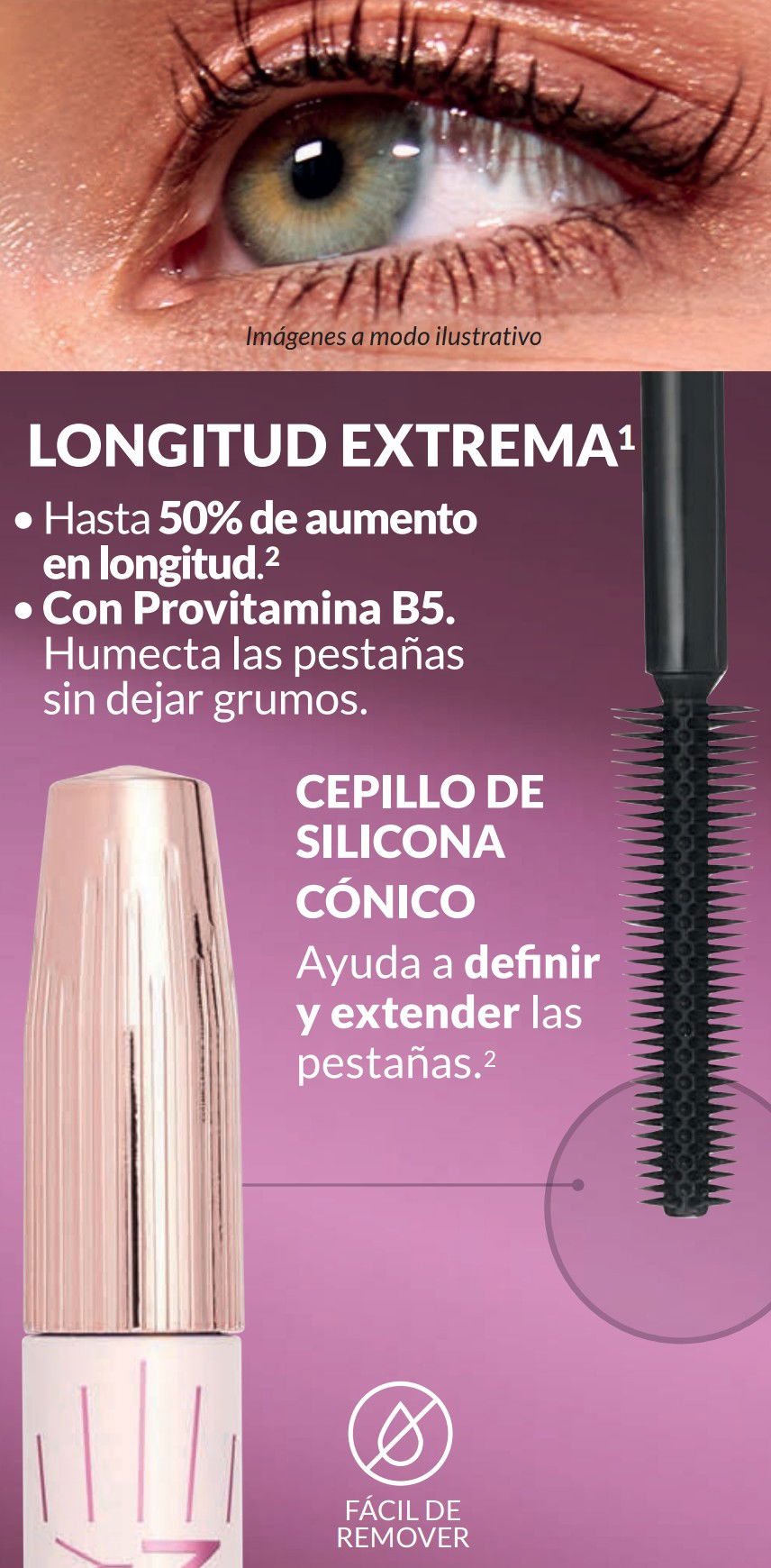 Humecta y acondiciona las pestañas sin grumos. Avanzada fórmula con polímeros ¡para que las pestañas luzcan más largas que nunca
