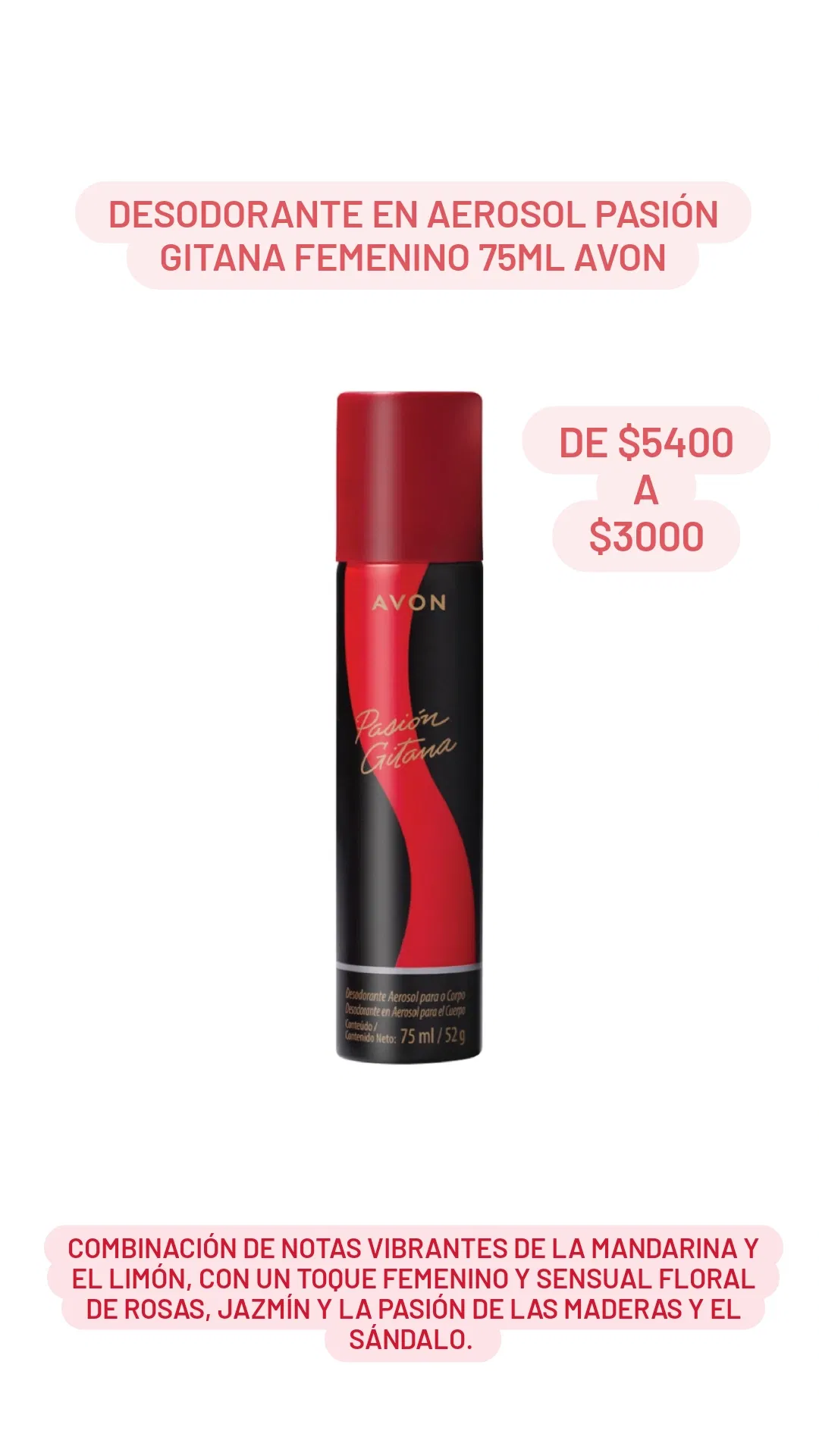 Desodorante en aerosol Pasión Gitana Femenino 75ml Avon