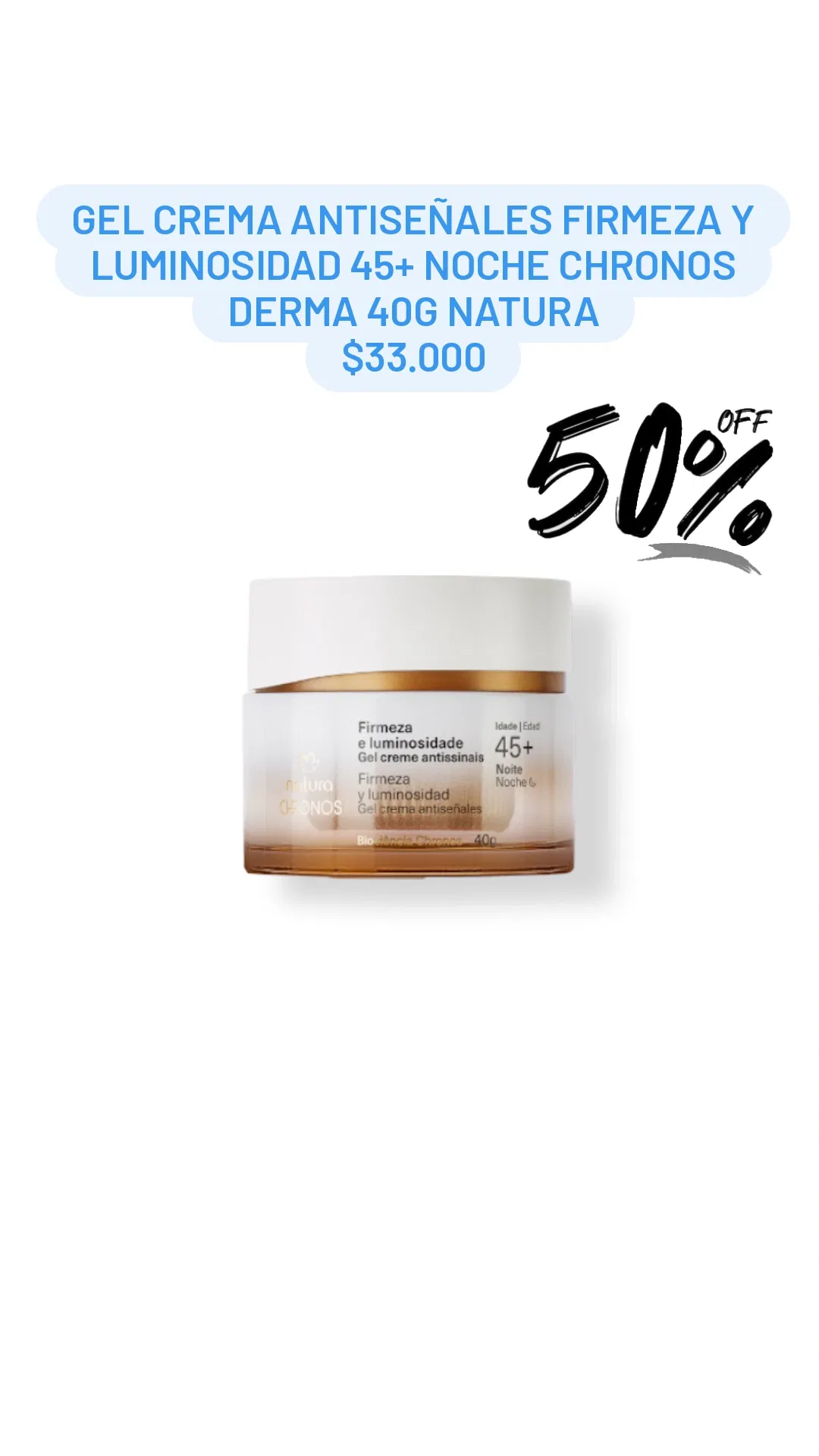 Gel Crema Antiseñales Firmeza y Luminosidad 45+ Noche Chronos Derma 40g Natura