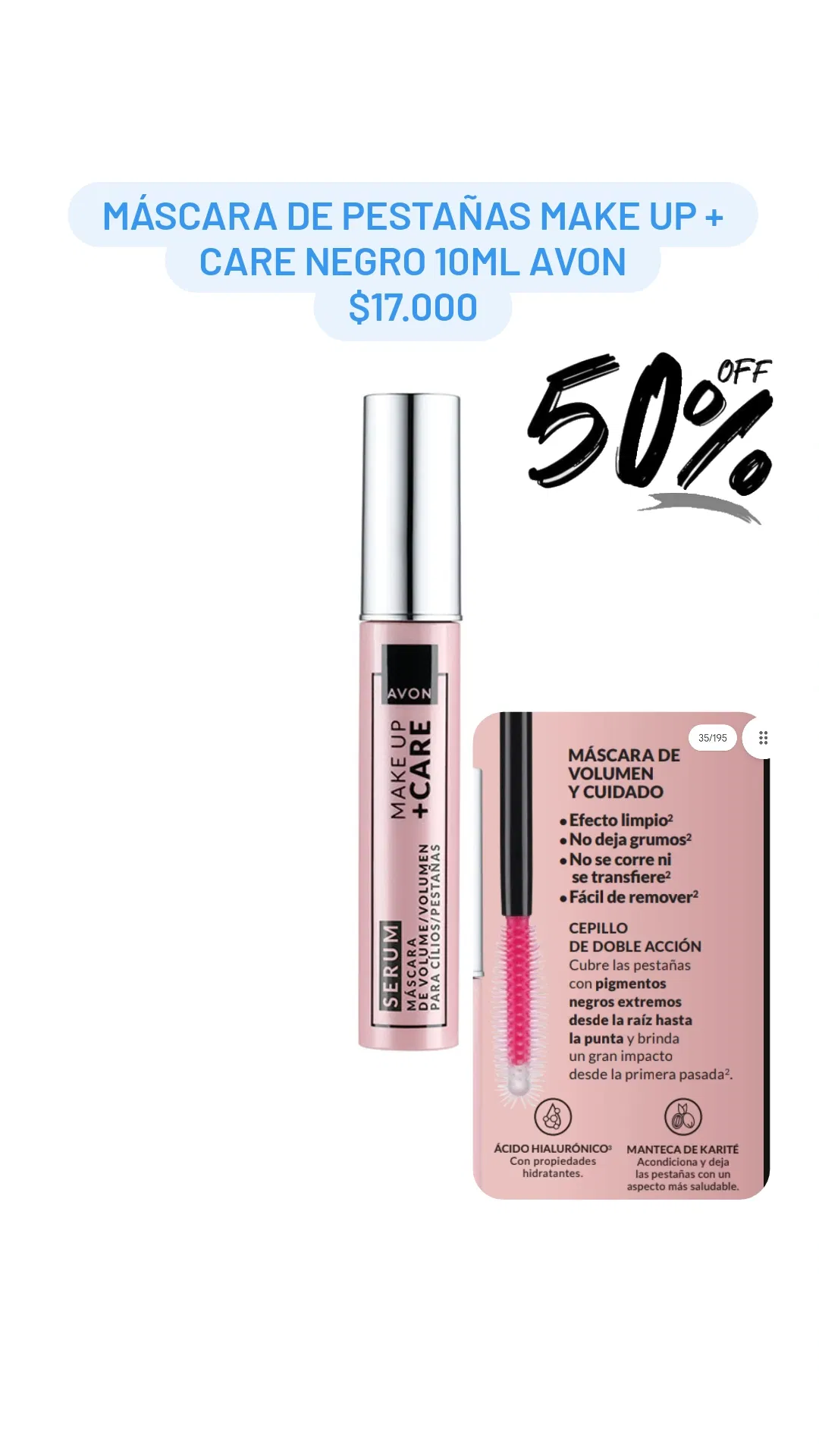 Máscara de pestañas Make Up + Care Negro 10ml Avon