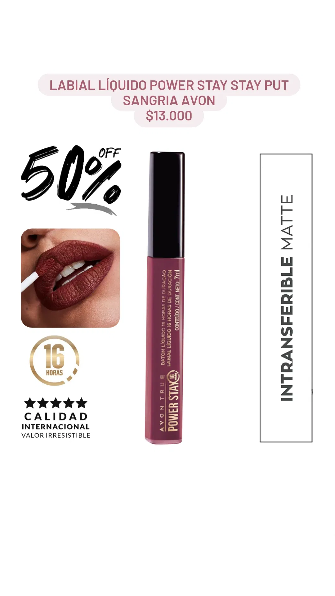 Labial Líquido Power Stay Stay Put Sangria Avon