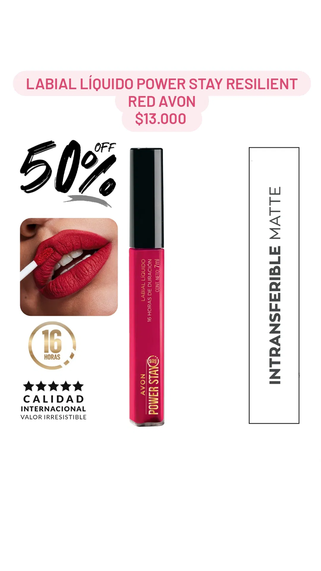 Labial Líquido Power Stay Resilient Red Avon