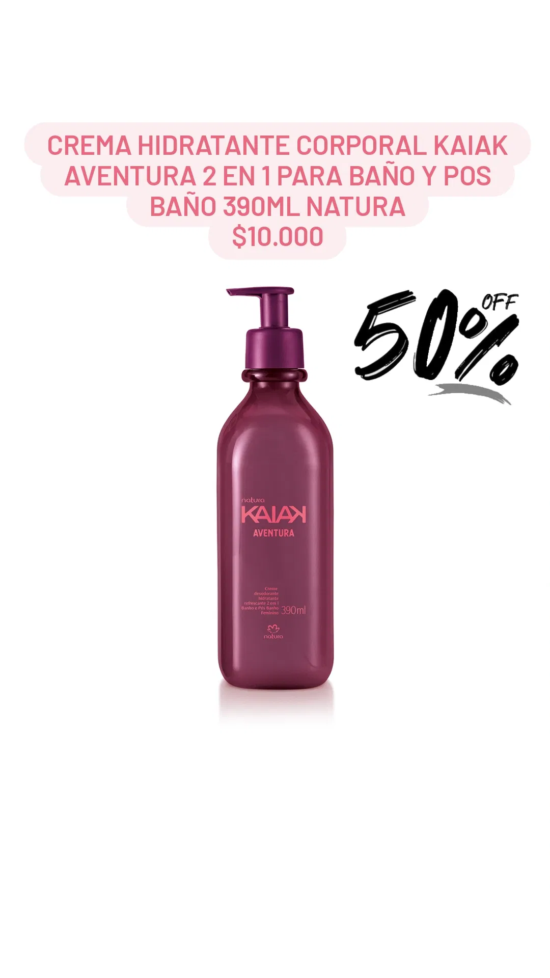 Crema Hidratante Corporal Kaiak Aventura 2 en 1 para baño y pos baño 390ml Natura