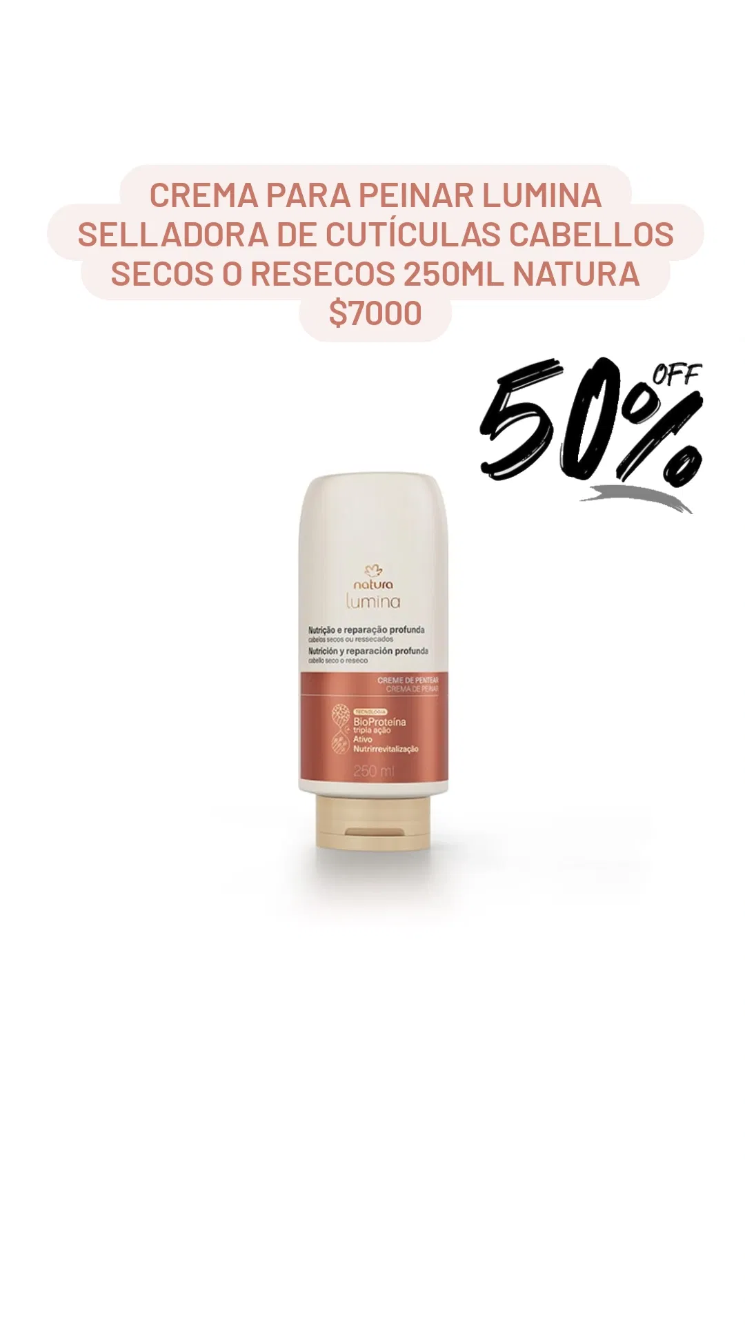 Crema para peinar Lumina Selladora de Cutículas Cabellos Secos o Resecos 250ml Natura