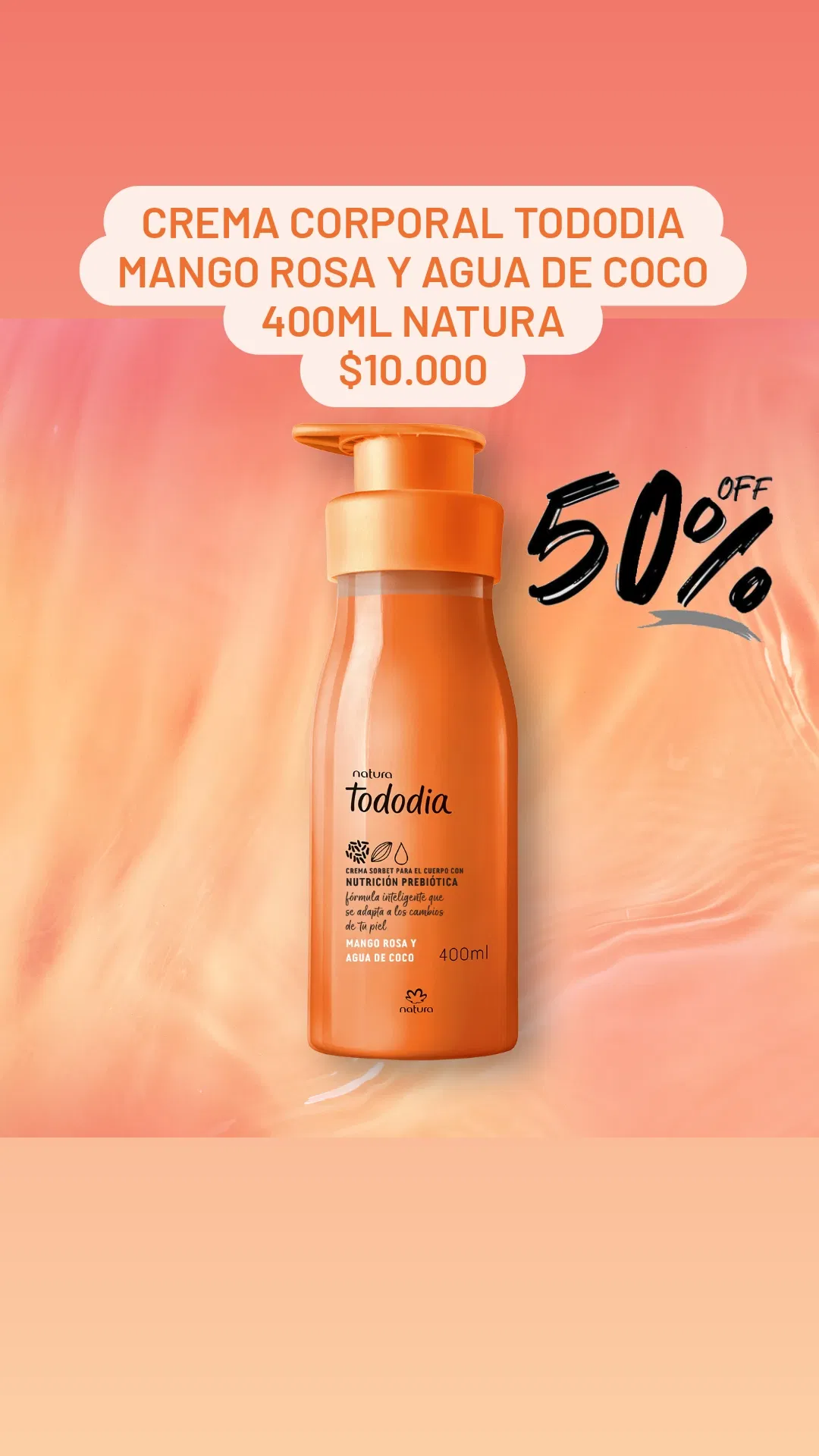 Crema corporal Tododia Mango Rosa y Agua de Coco 400ml Natura