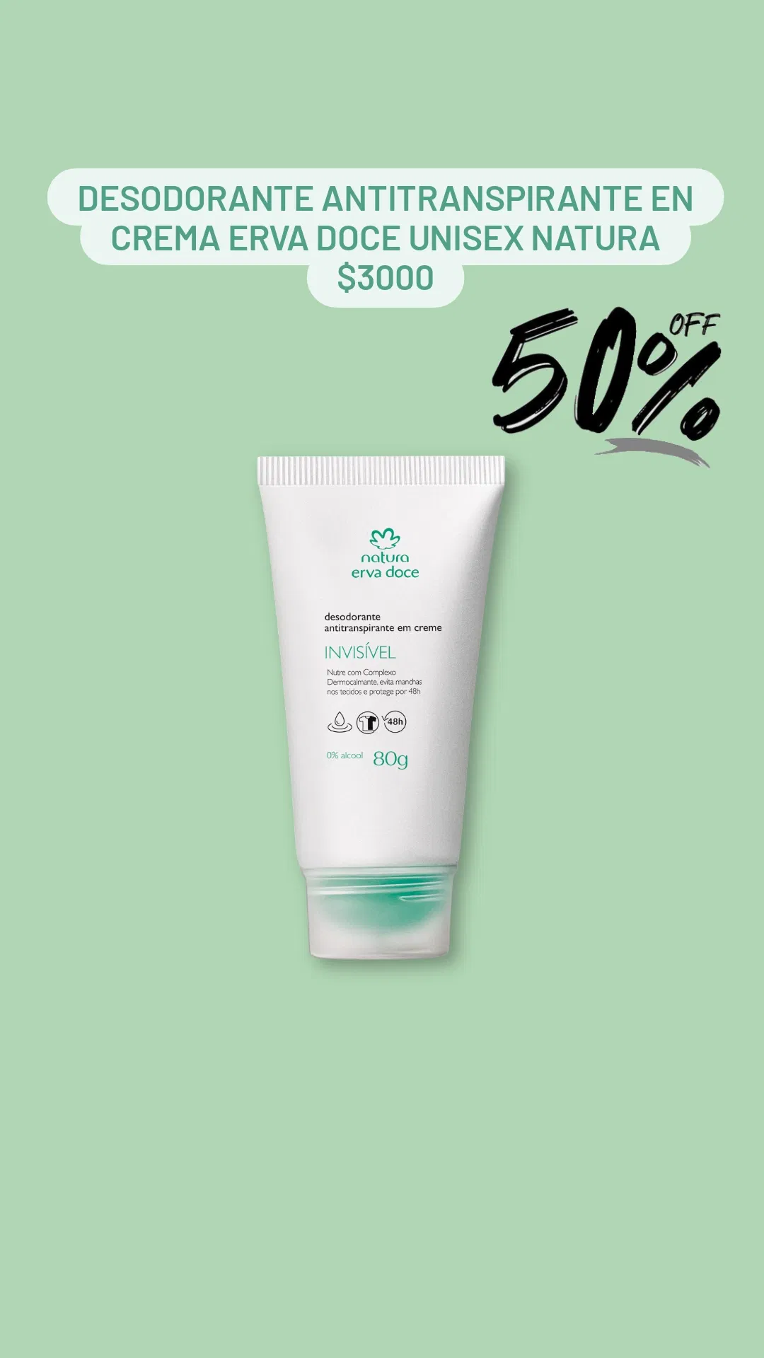 Desodorante Antitranspirante en crema Erva Doce Unisex 70ml Natura