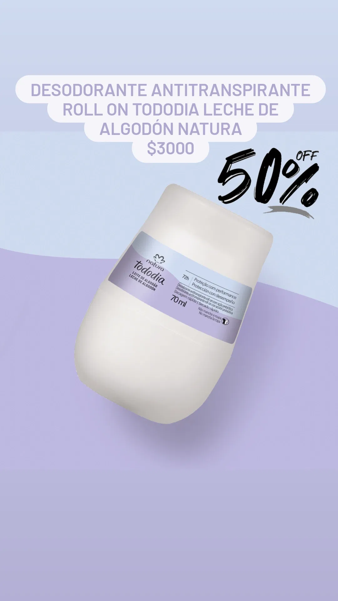 Desodorante Antitranspirante Roll On Tododia Leche de Algodón Natura