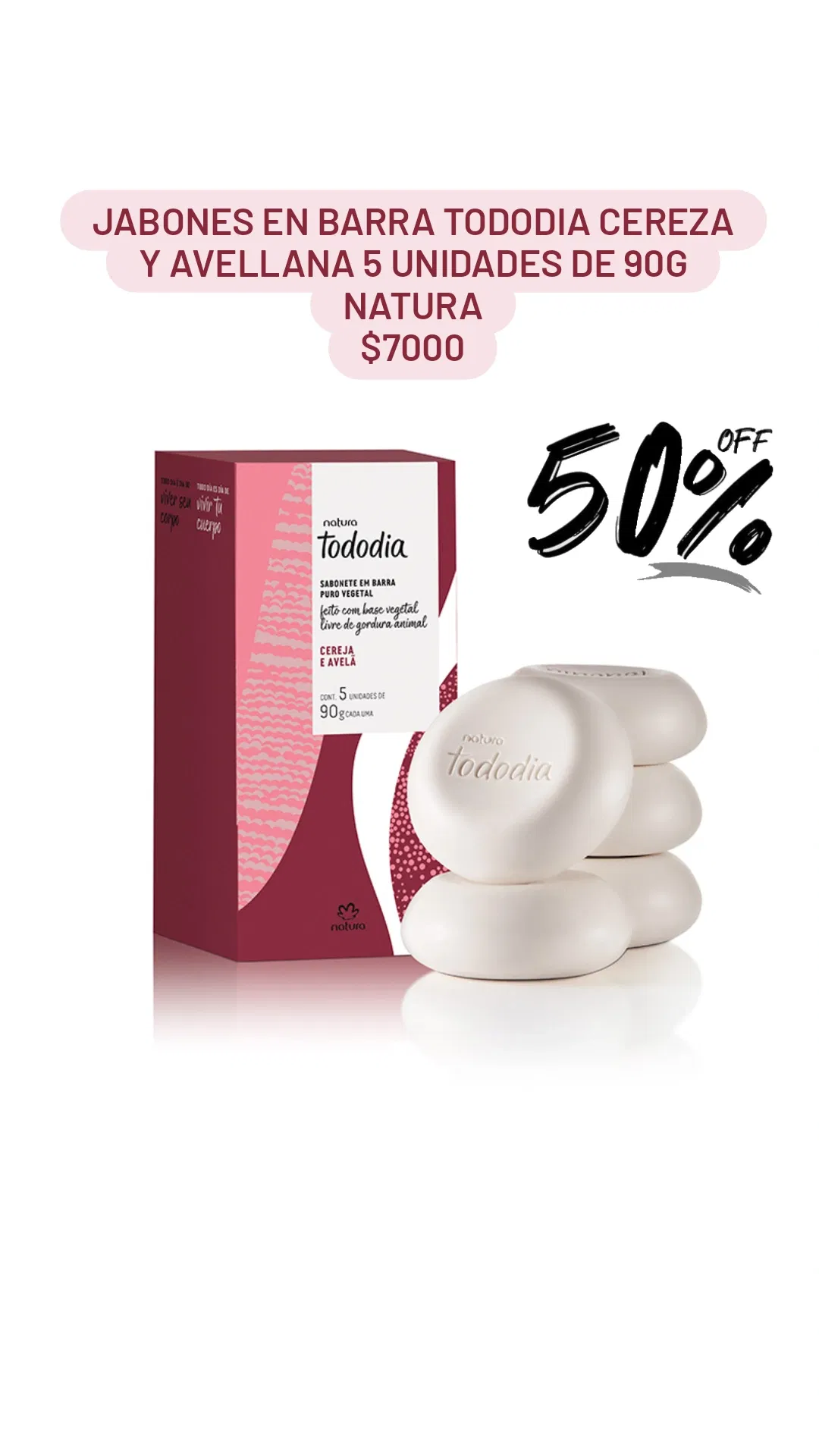 Jabones en barra Tododia Cereza y Avellana 5 Unidades de 90G Natura