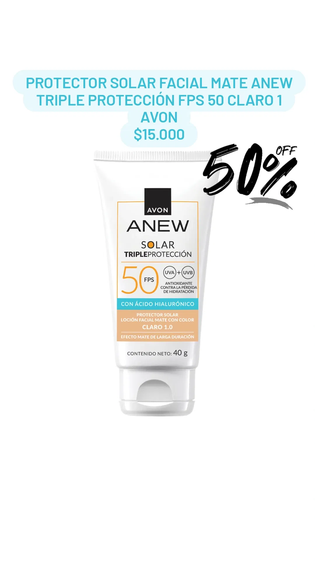 Protector solar facial mate Anew Triple protección FPS 50 Claro 1 Avon