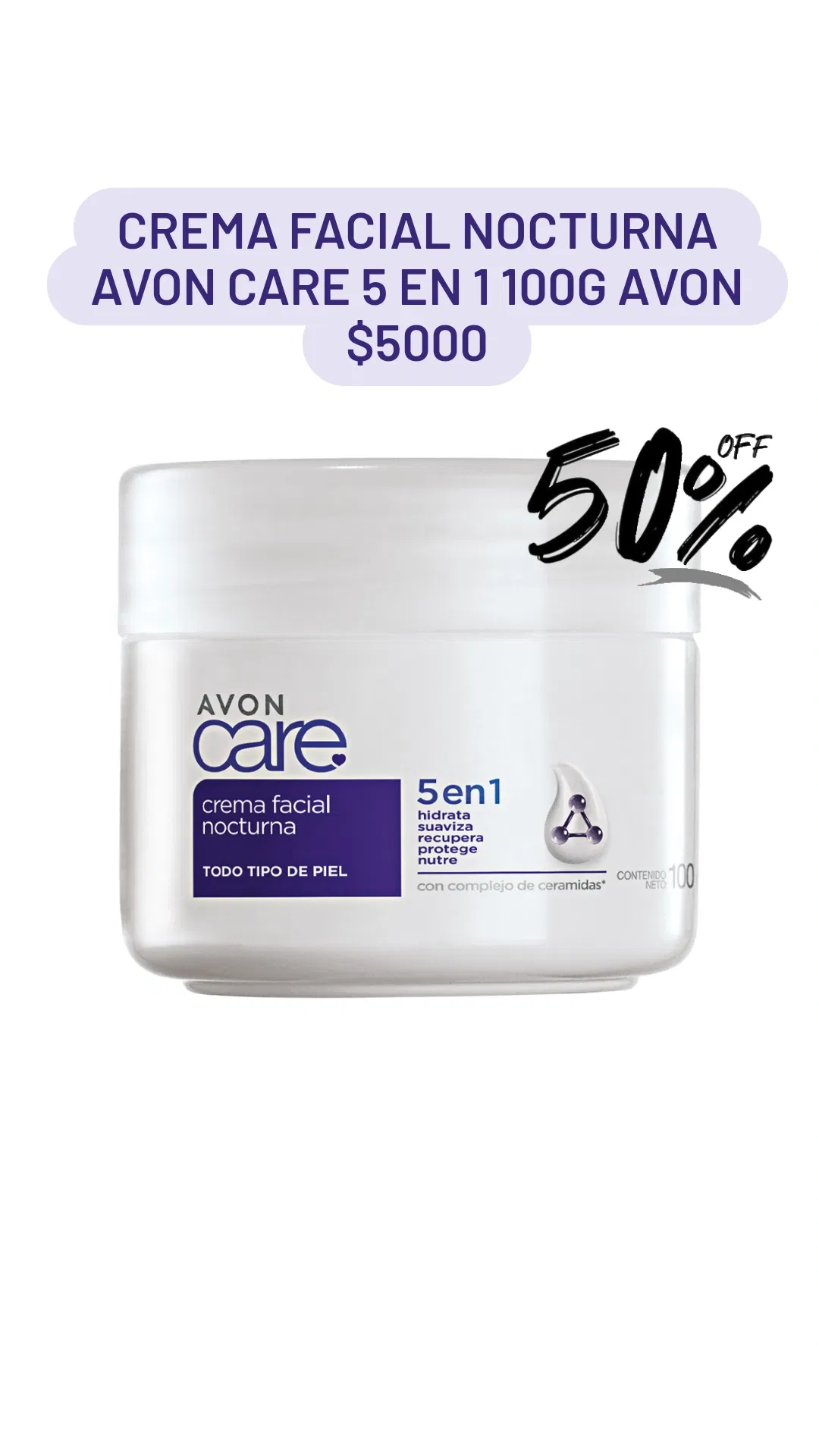 Crema Facial Nocturna 5 en 1 Care 100g Avon