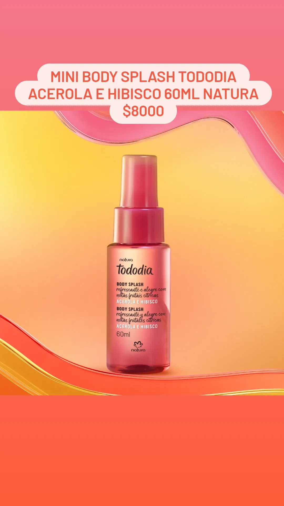Fragancia de verano para llevar en tu cartera. La línea Tododia Acerola e Hibisco ahora cuenta con una versión en miniatura del querido body splash. Su fragancia cítrica y afrutada es perfecta para usar después de la ducha o en cualquier momento del día. Fragancia refrescante que hidrata suavemente la piel.