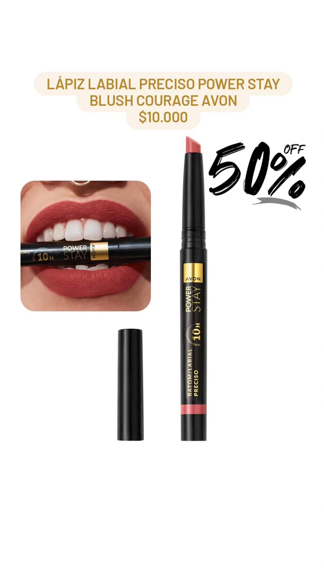Lápiz Labial Preciso Power Stay Blush Courage Avon
