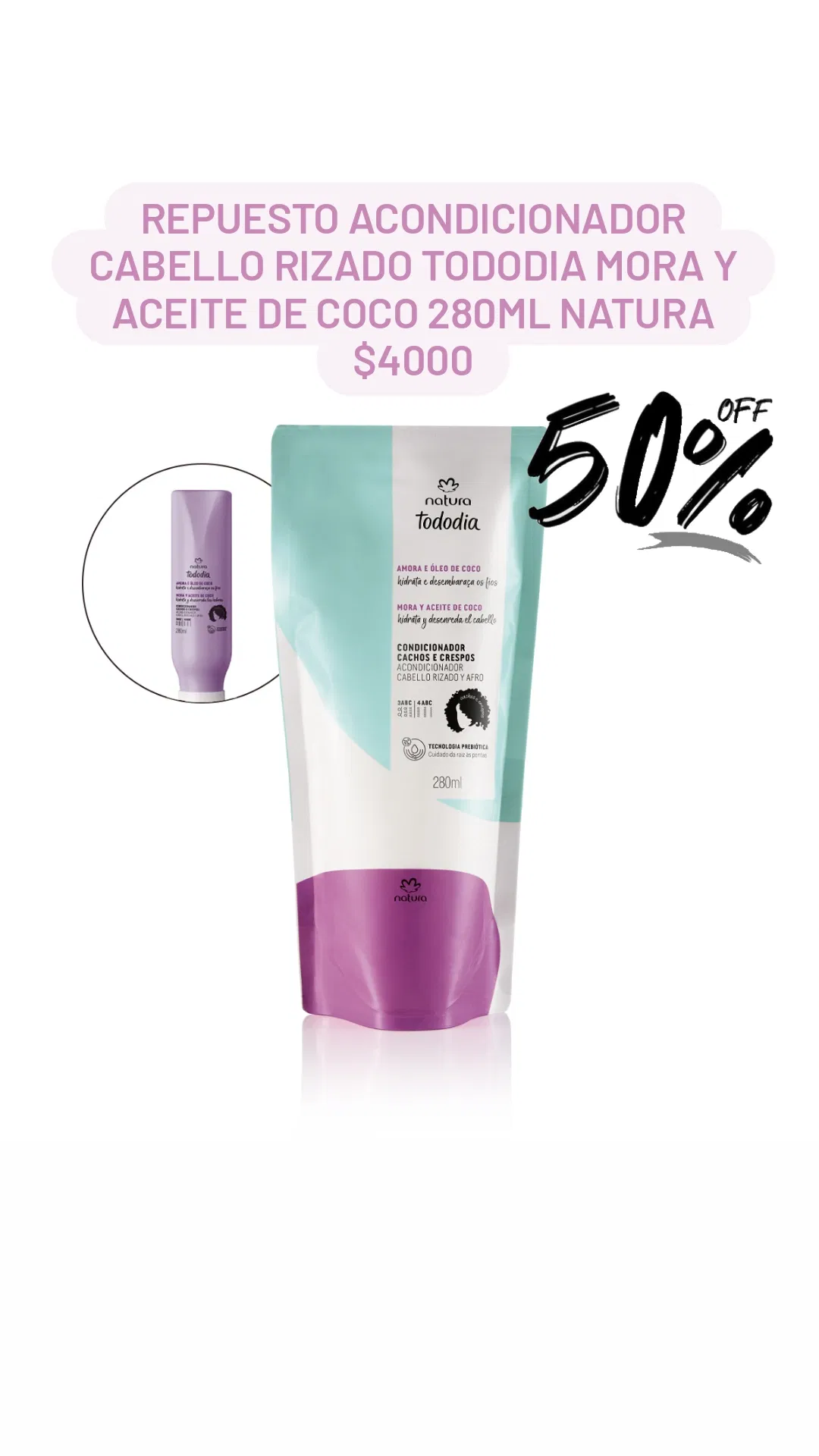 Repuesto Acondicionador Cabello Rizado Tododia Mora y Aceite de Coco 280ml Natura