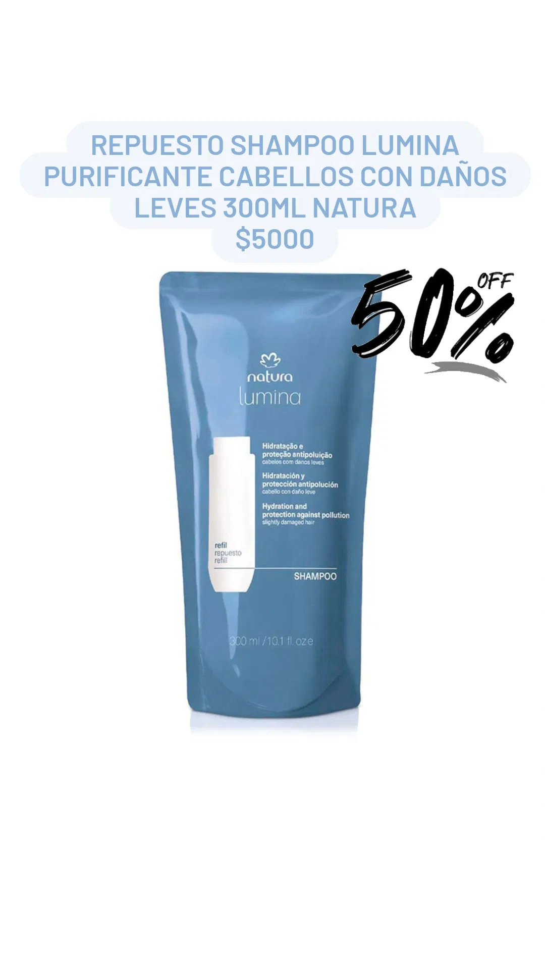 Repuesto Shampoo Lumina Purificante Cabellos con Daños Leves 300ml Natura