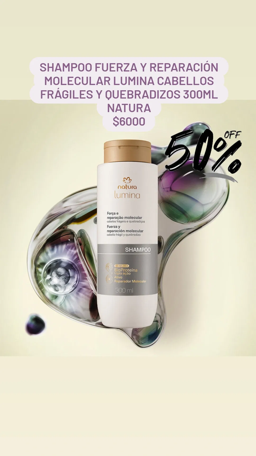 Shampoo Fuerza y Reparación Molecular Lumina Cabellos Frágiles y Quebradizos 300ml Natura