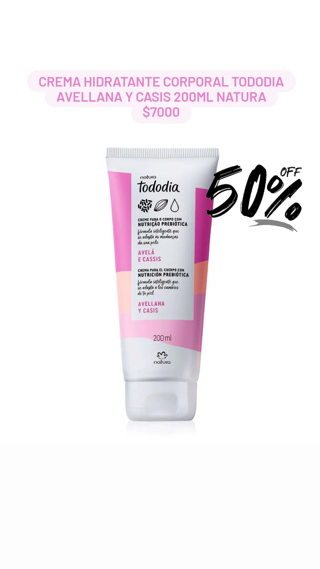 Crema hidratante corporal Tododia Avellana y Casis 200ml Natura